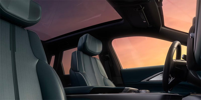 The 2025 Cadillac LYRIQ offers the Luxury and Sport trims, each available in 3 unique tiers. The Luxury 1 model sets the tone with sleek, modern lines, a signature illuminated black crystal shield grille, Galvano Chrome detailing, and a panoramic glass roof. Gloss Black finishes, 20-inch diamond-cut 6-spoke wheels with a Dark Android finish and choreographed LED lighting give it a wow factor. Luxury 2 variant adds a hands-free power liftgate, while the Luxury 3 steps up with 22-inch split-spoke reverse-rim alloy wheels paired with low-profile tires for a dramatic look. The aggressive Sport 1 and 2 trims take drama to a new level, substituting chrome for darkened obsidian finishes, adding dark aero accents, and bold, 20-inch 12-spoke wheels with a Satin Dark Android finish. The Sport 3 delivers a bolder fascia, illuminated Cadillac crest, 22-inch wheels, and unique gloss black elements that draw the eye and hold it. An available black roof tops off rich colors like Emerald Lake or Celestial Metallic, complementing sculpted body lines and flush door handles that preserve aerodynamic purity.
