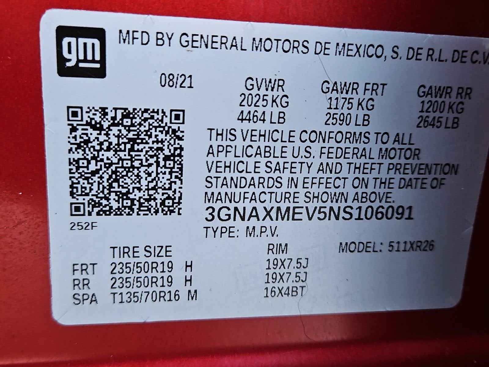 3GNAXMEV5NS106091