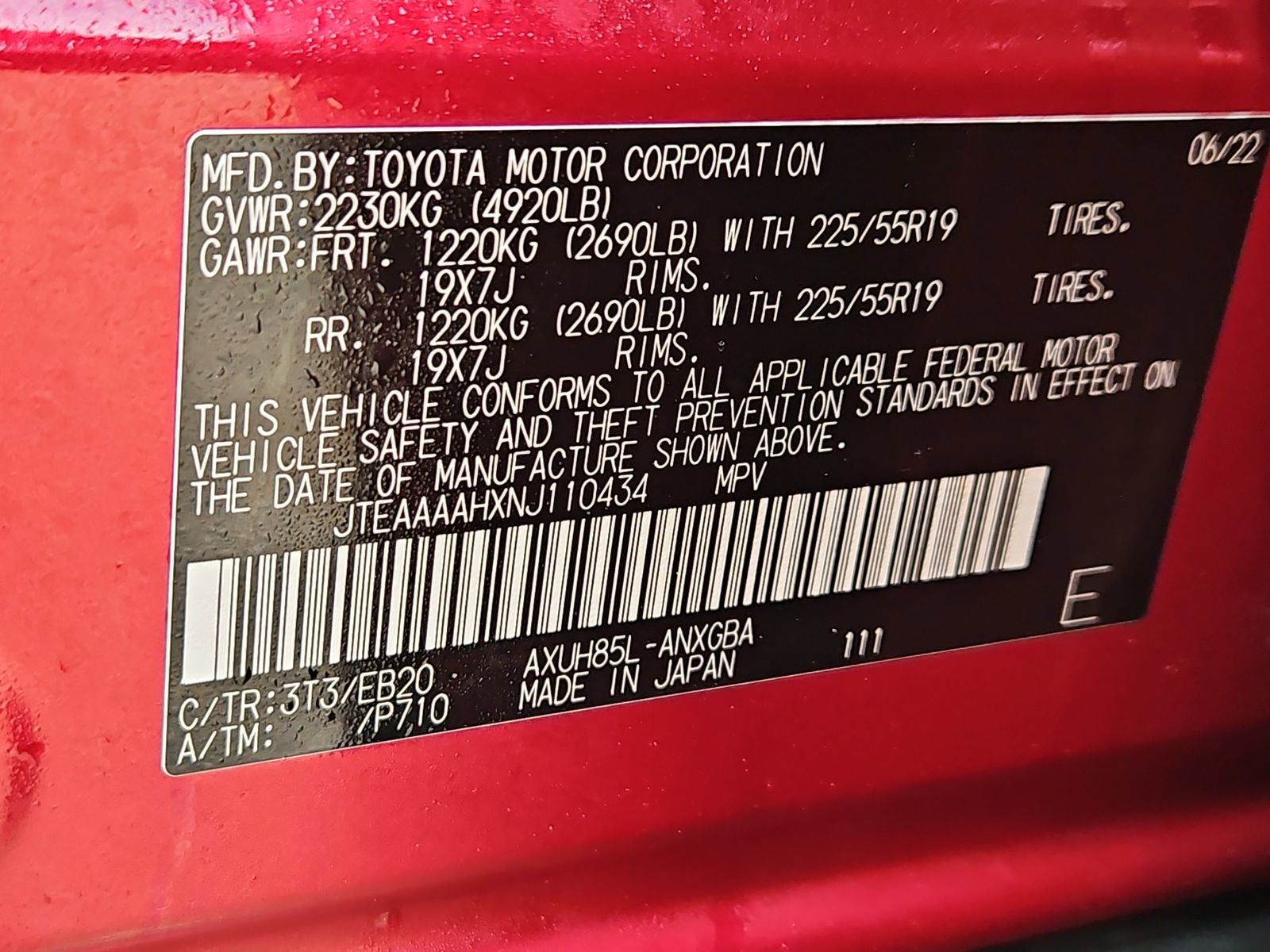 JTEAAAAHXNJ110434